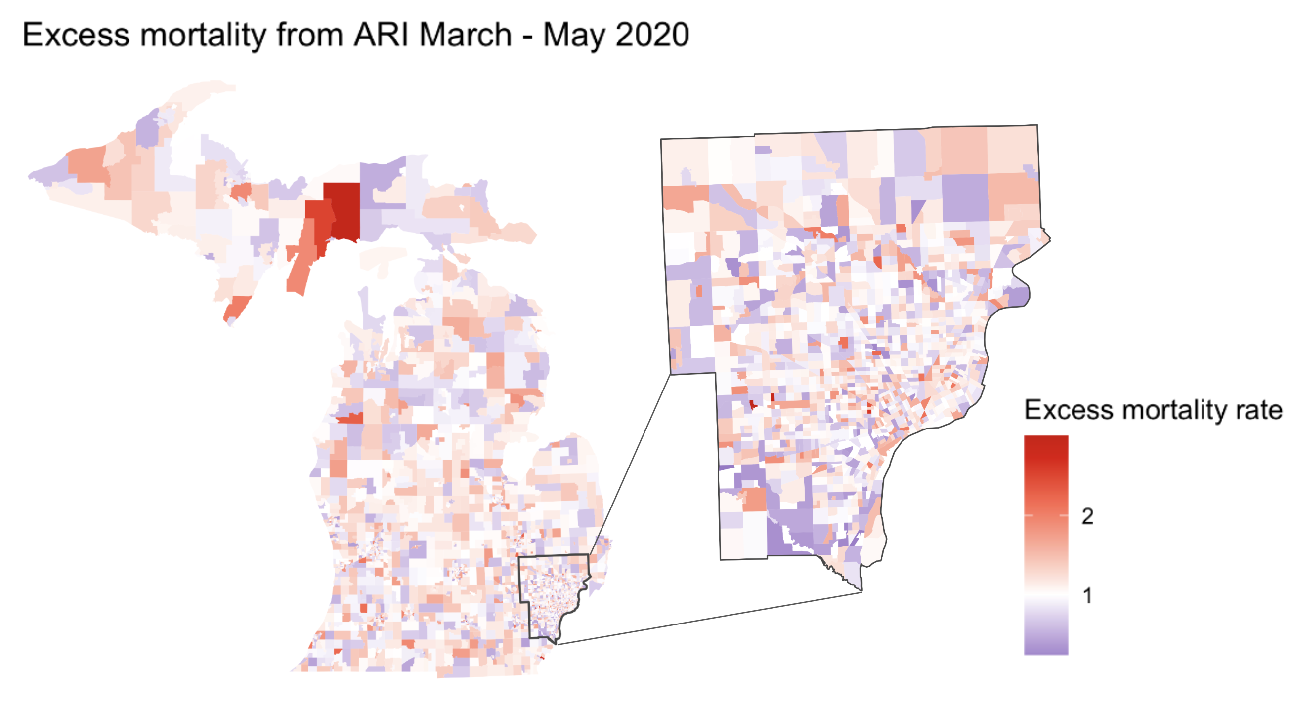 Socioeconomic inequity in excess ARI mortality in Michigan manifested largely at the sub-county level(from Herdzik et al., In Prep)