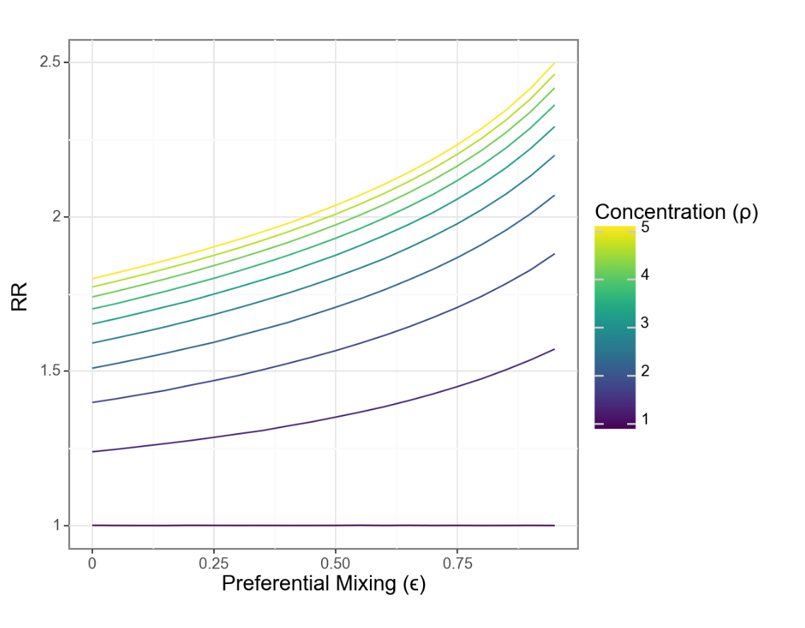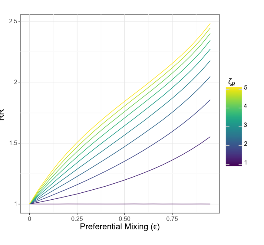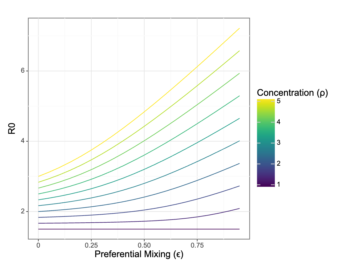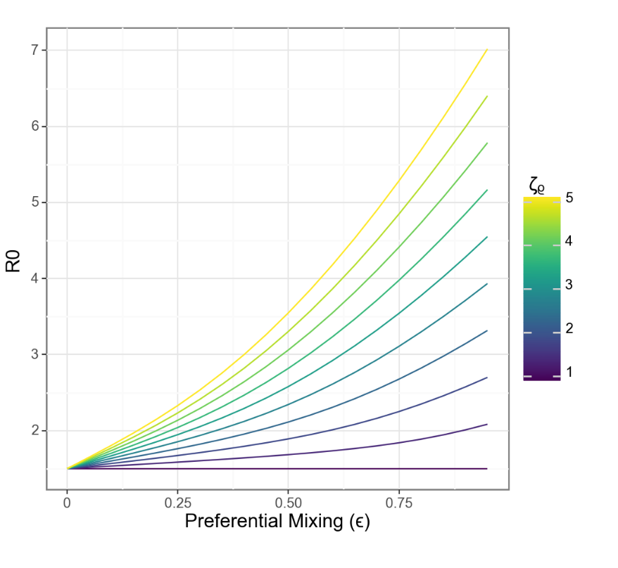 Preferential mixing only impacts R0 in the presence of differential vulnerability to infection between groups